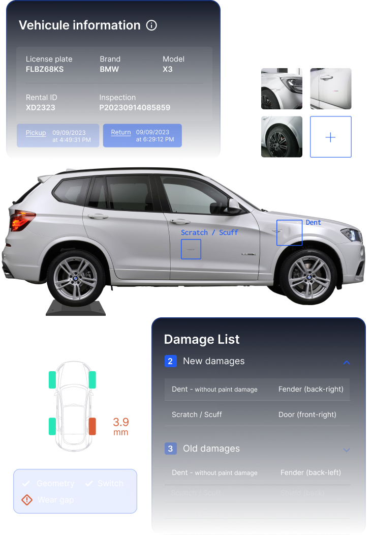 Nos scanners IA vous permettent d’identifier avec précision tous les dommages causés aux véhicules de vos clients ou tout changement au sein de votre parc automobile.